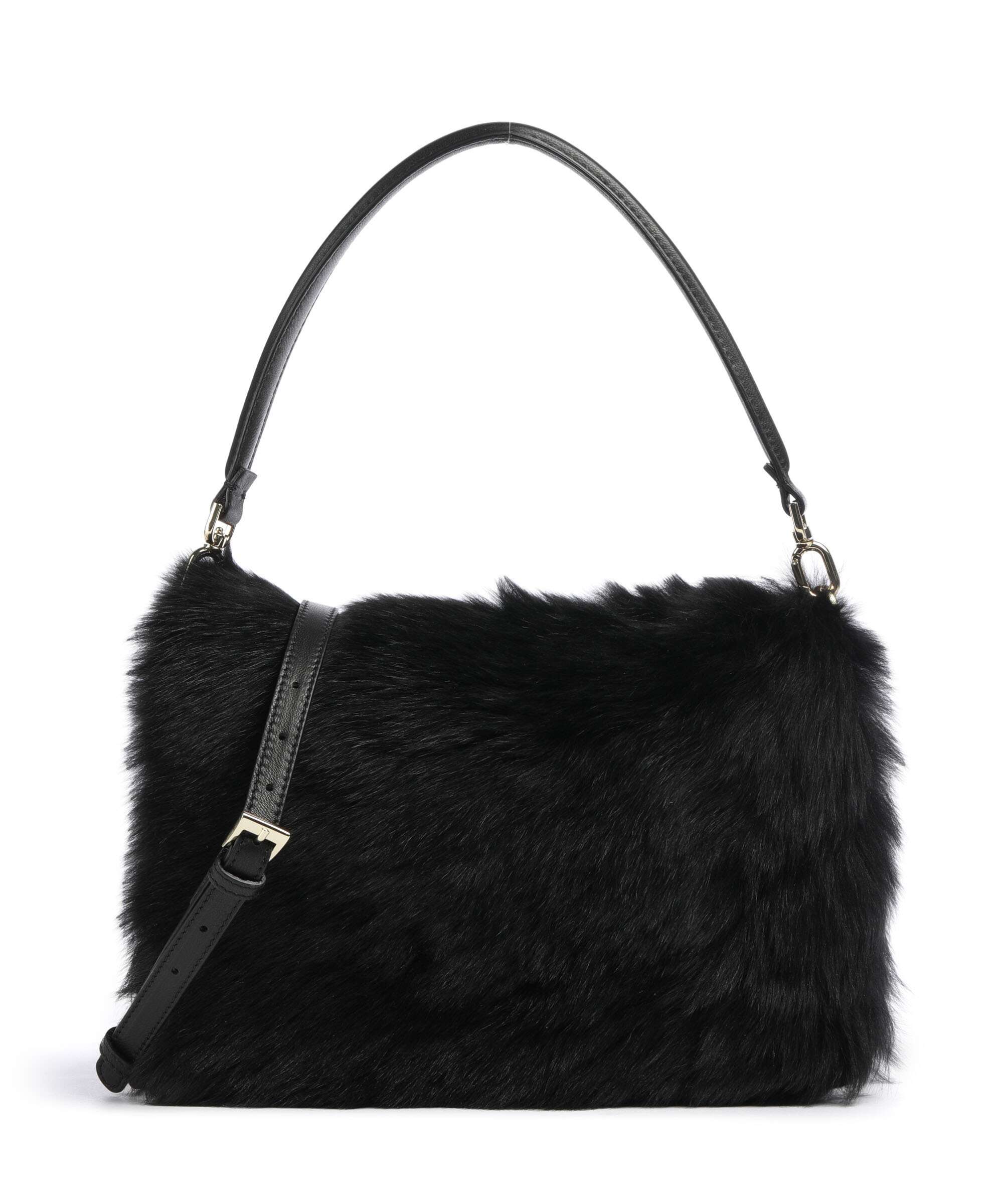 Shearling Astor Skuldertaske pels, finkornet læder black/gold